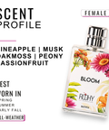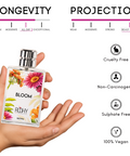 The base wraps the fragrance in a soft embrace of musk, warm woody notes, and earthy oakmoss, leaving a lingering aura of natural elegance. Bloom is a celebration of vitality and grace, perfect for women who radiate joy and beauty.