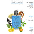 The base unfolds into a smooth, grounding finish with creamy sandalwood, soft musk, and the aromatic depth of petitgrain and galbanum. Eterna is a timeless fragrance for men who embody elegance and quiet confidence.